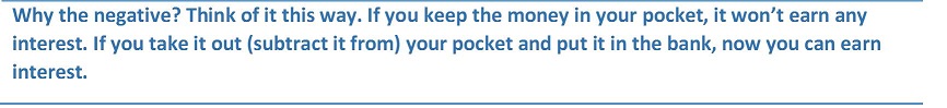 - Present value (initial deposit expressed as a negative)