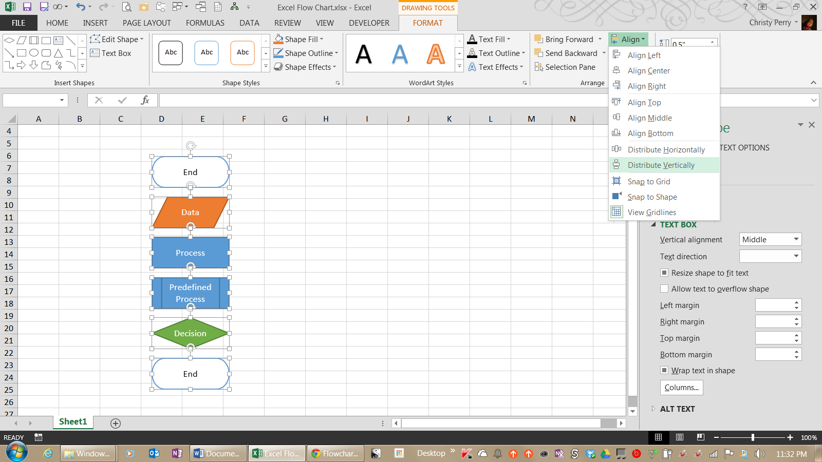 • Double-check the sizes for consistency. Make all elements the same height and width to up the polished and professional look of your flowchart. You can adjust each element’s height and width by selecting the item and modifying the parameters on the Format ribbon.