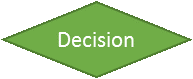 - A decision, such as evaluating whether a prior process completed properly. The connectors flow out from each corner of the diamond, depending on the outcome of the decision